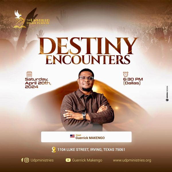 Event Overview:"Destiny Encounters" is a monthly gathering designed to be a transformative and intense prayer experience in the DFW area. This event aims to create a sacred space where individuals come together to seek divine encounters, align with their destinies, and collectively impact the region through fervent prayer.